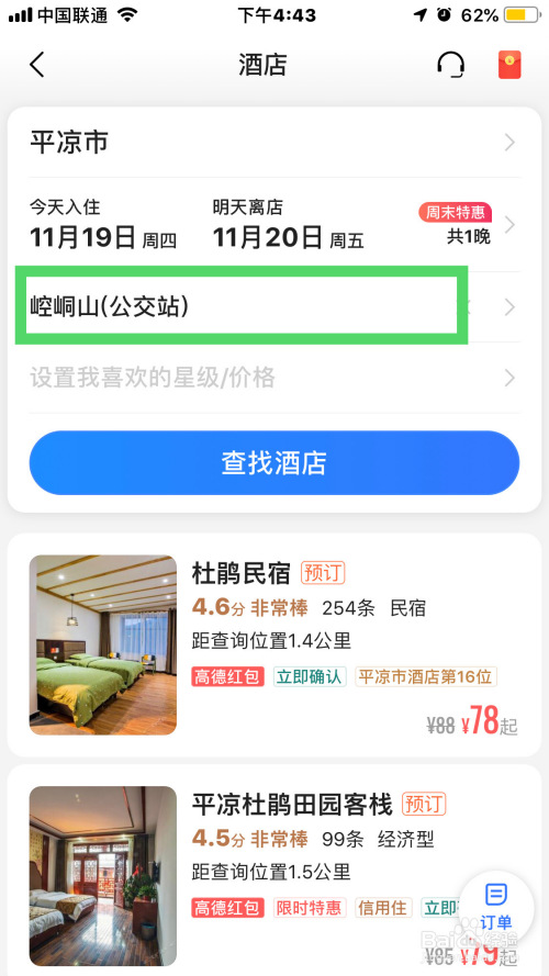 接着,鄙人一个界面的上方点击酒店按钮