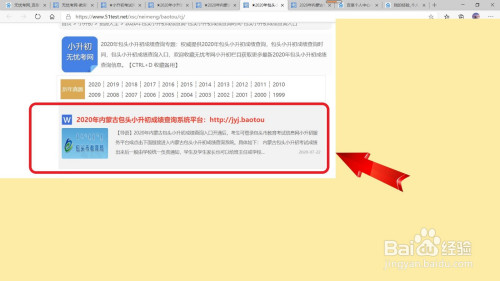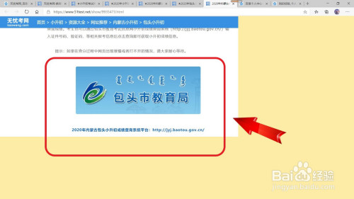 第五步,最后点击打开“2020年内蒙古包头小升初成就查询系统平台”查询小升初的当作薪伐绩。