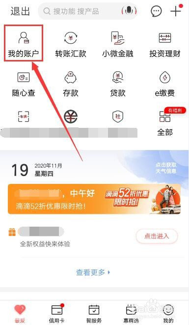 登录当作功后在首页选择【我的账户】,点击进入。