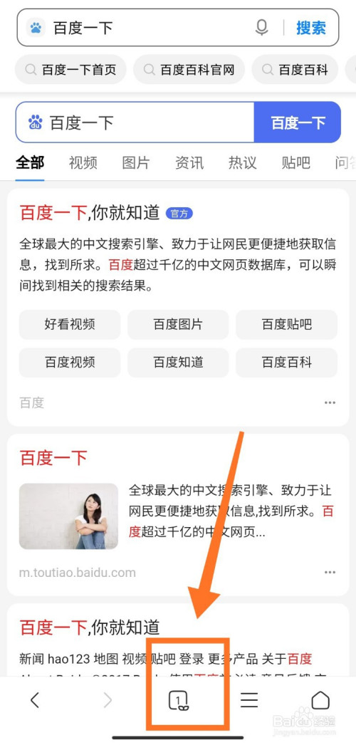 浏览器中点击下方【菜单】;