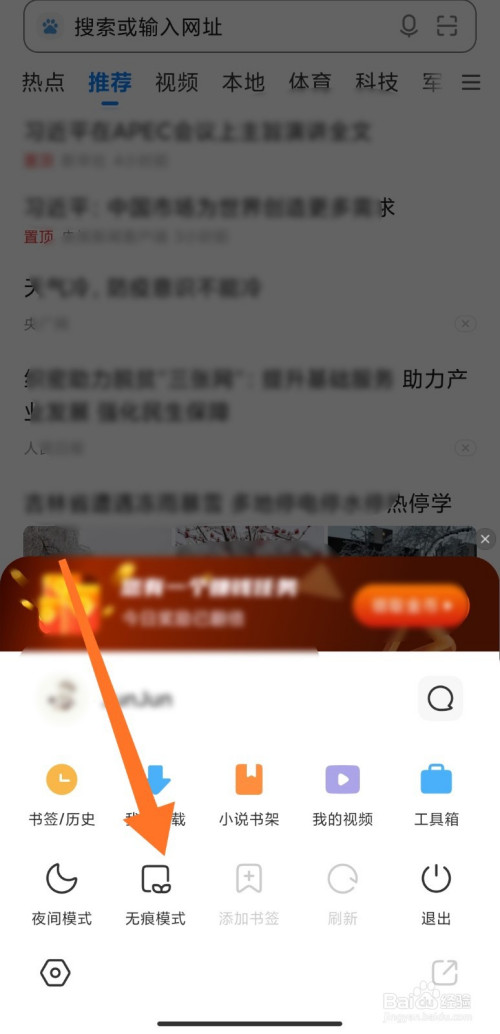 弹出页面,点击【无痕模政脾式】;