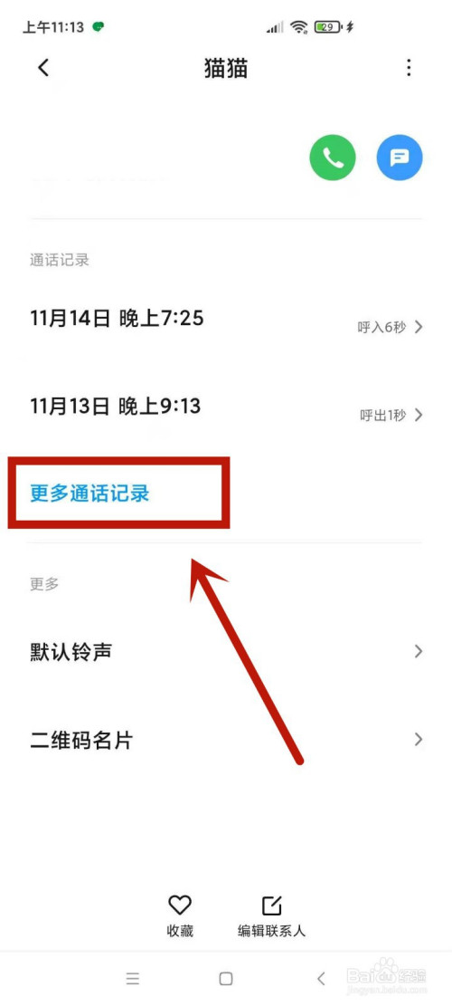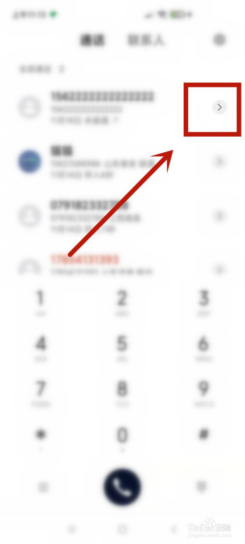 1.打开手机德律风,找到某德律风记实,点击该记实后的小箭头。