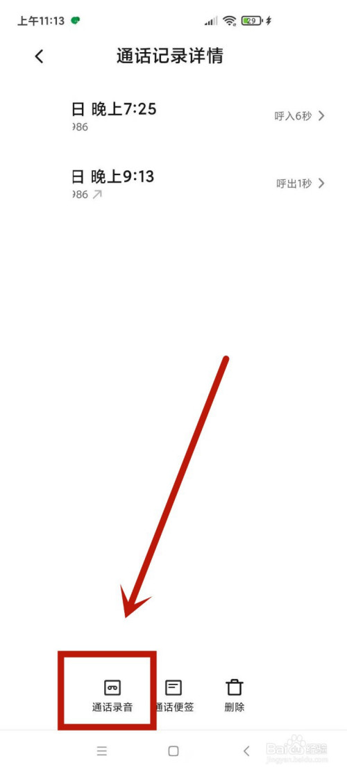 在通话记实详情页面,点击左下角的通话灌音选项。