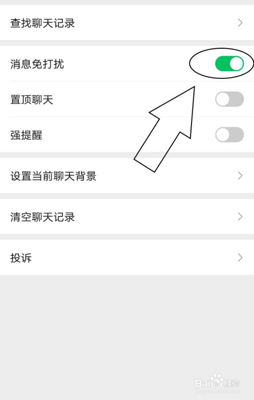 3.在聊天信息中找到动静免打搅。