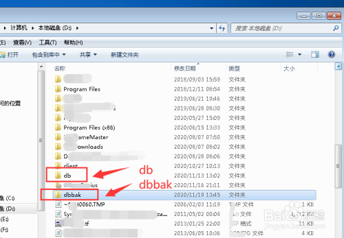 在电脑D盘(按本身现实环境选择)下成立两个文件夹,一个加db,另一个叫dbbak。