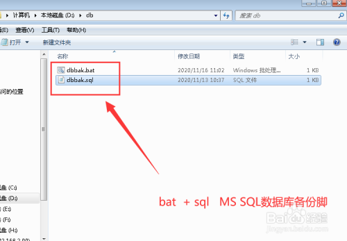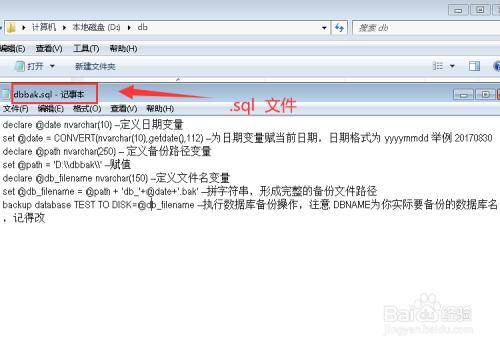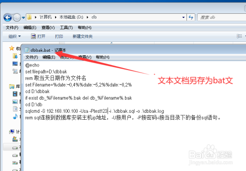 在文件夹db中成立一个dbbak的文本文档,起头编写剧本:
