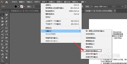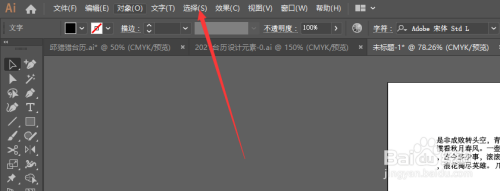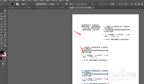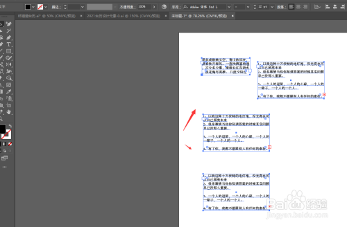 在AI中,打开画板,在画板中成立有多个文本