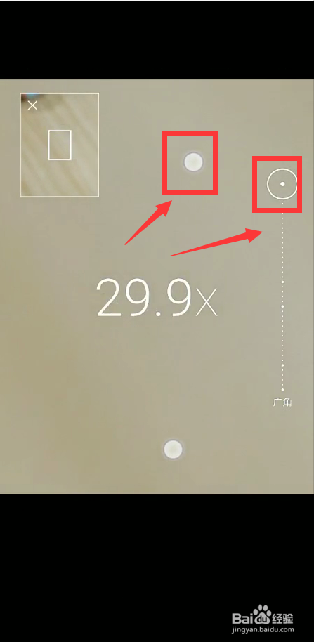 接着材轿手指标的目的上滑动焦距,放大摄影倍数。如图。