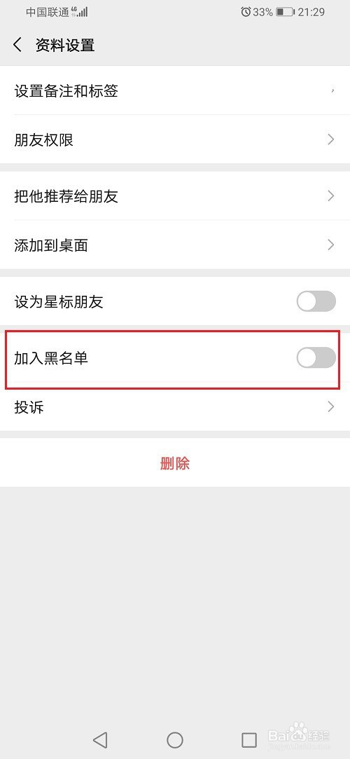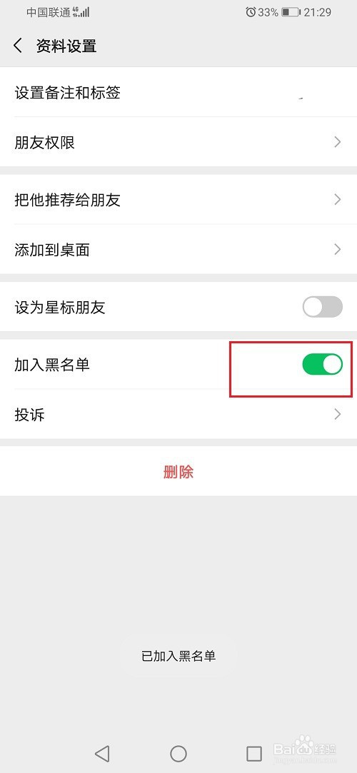 第五步插手黑名单之后,就设置不让老友拉进袭物群里了,按照需要设置