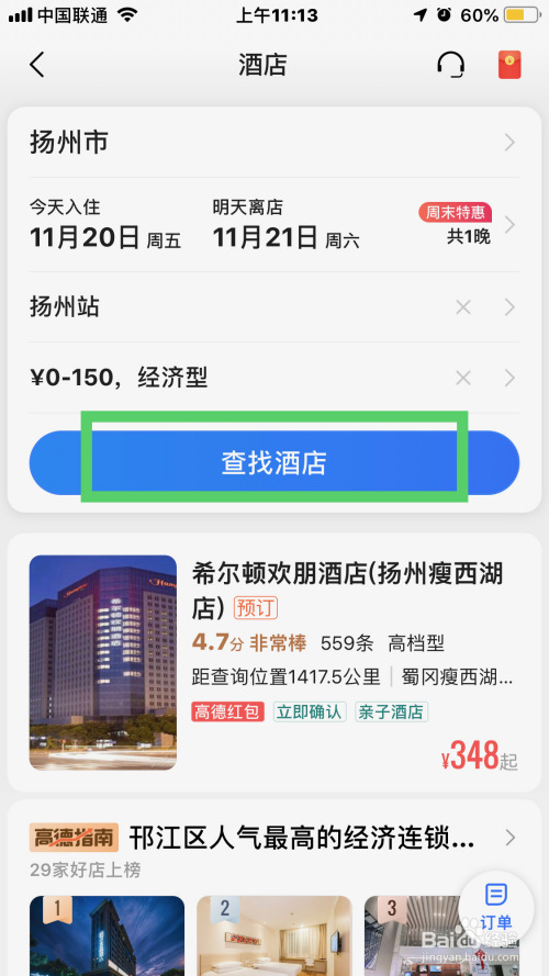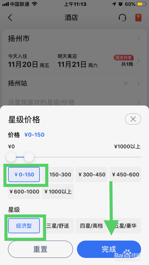 紧接着,星级价钱选择价钱经济型的酒店,点击完当作