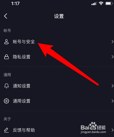 下一步点击页面里的账户与平安。