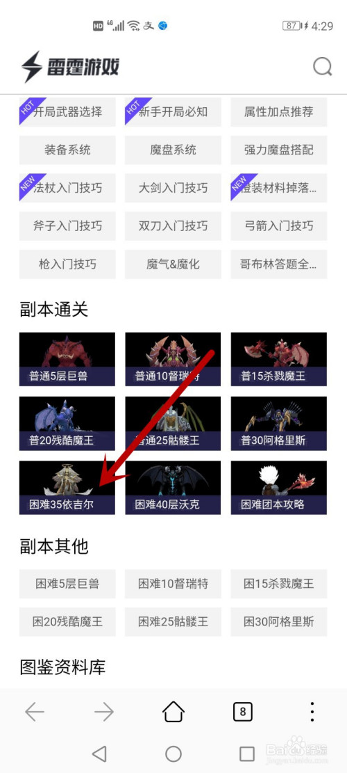 页面跳转后,下拉点击坚苦35依吉尔。