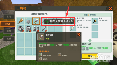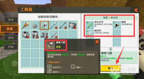 之后,找到蜂刺飞镖,点击建造。
