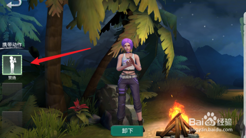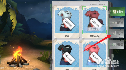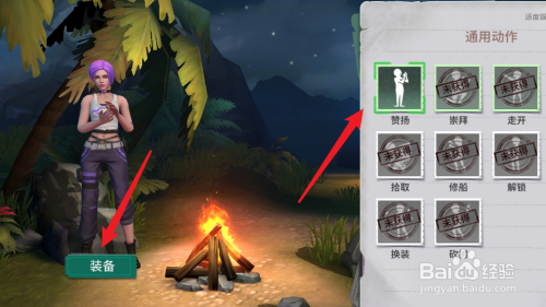 4、最后,点击右侧的动作,再点击下方的装备选项,即可携带动作了。
