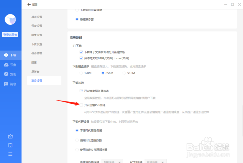 最后将“开启迅雷P2P加快”前的勾选去失落即可。