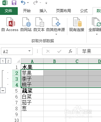 再点击刚发生的【2】,会将属于【生果】的所有品种地点的行显示出来,“+”酿成“-”,同时属于【生果】的所有品种地点行会处在一种被选中的状况。