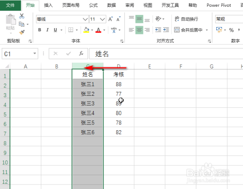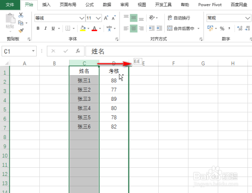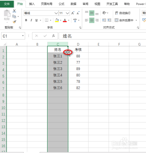 选中方针列数据,移动光栗畜标到列的右边缘,使得光标变为黑色十字,具体如图所示: