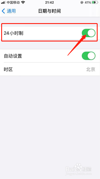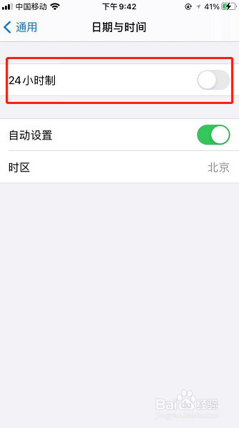 日期与时候界面点击【24小时制】后面的圆点