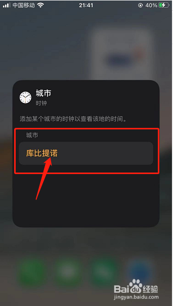 时钟小组件显示城市为【库比提诺】,点击库比提诺进捕改入城市界面