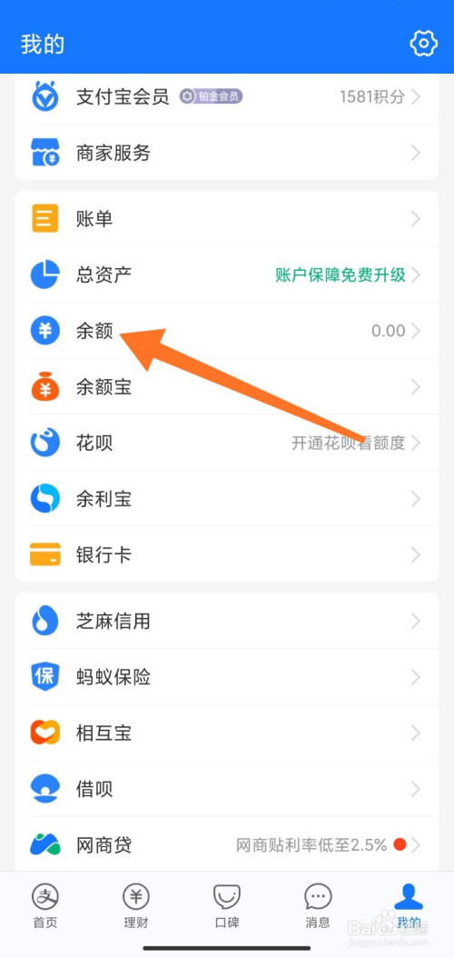 在我的界面,点击余额;