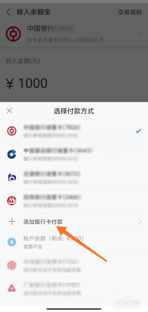 在上方点董屈击银行卡,弹出页面下方添加银行卡付条目;