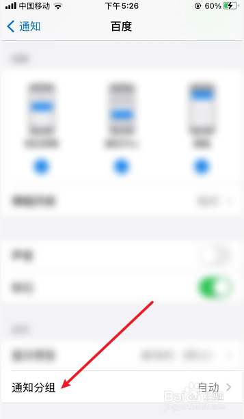在百度APP界面点击【通知分组】,打开通知分组界面