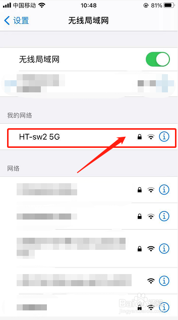 无线收集界面点击【主动进入】后面的圆点,圆点变喝娃为灰色即暗示iPhone封闭主动插手无线局域网当作功