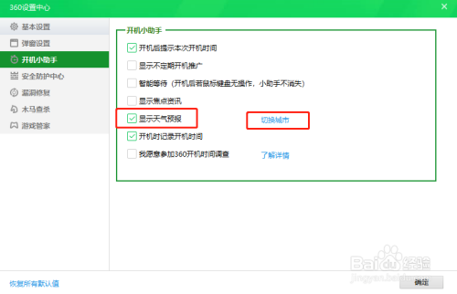 勾选“显示气候预告”,再点击切换城市;
