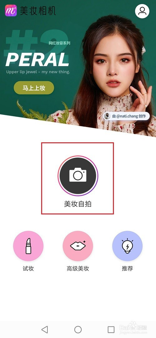 第二步进去之后,点击中心的美妆自拍