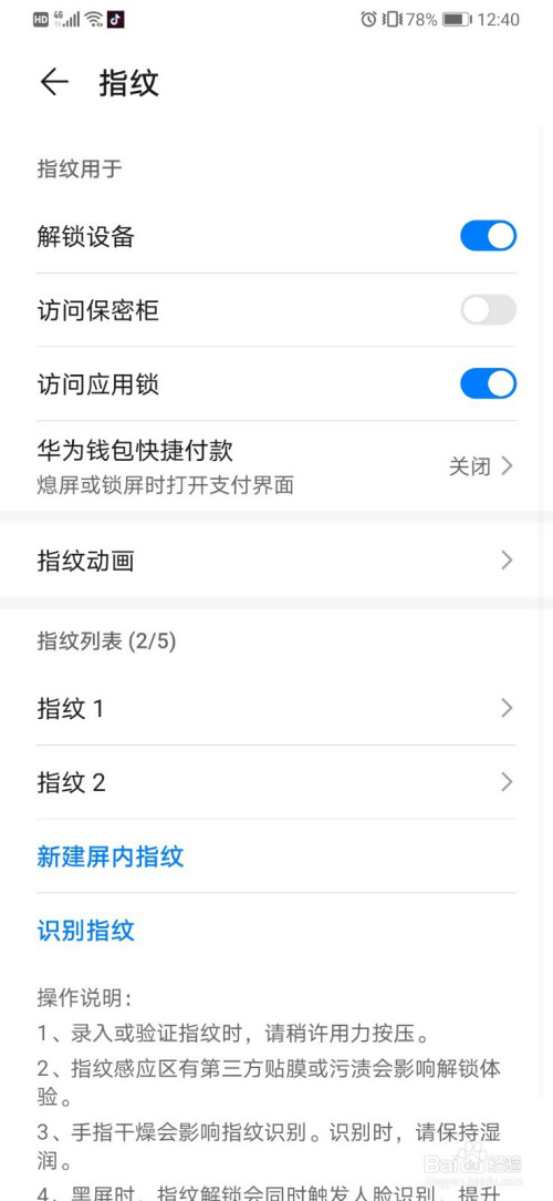 首先,我们来到指纹解锁傍边,可以多录几个指纹,这样可以便利一些。