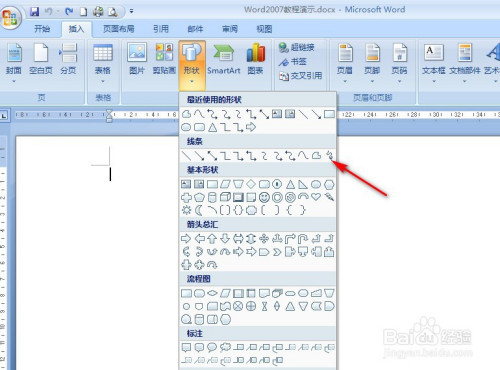 弹出选择栏中,点击【自由曲线】小图标。
