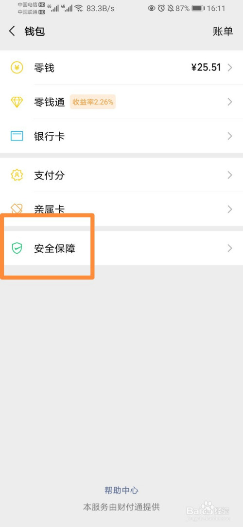 进入之后,我们选择最后一项“平安保障”。