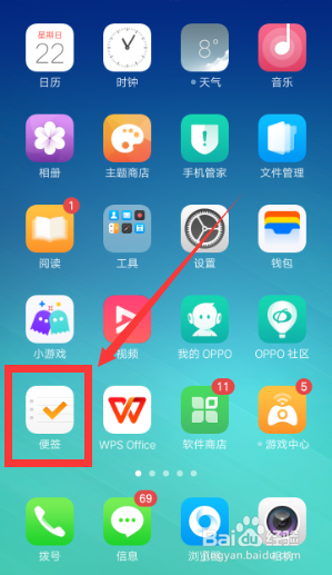 找到手机桌面上的便签并打开。