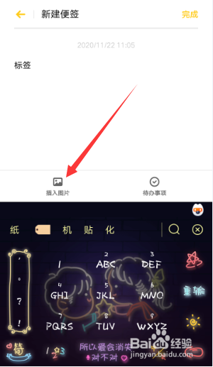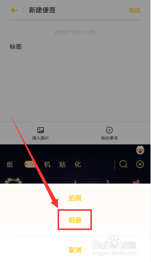 在便签编纂界面选择【插入图片】。