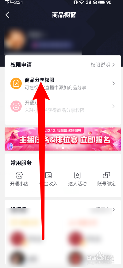 5、接着再点击商品分享权限。
