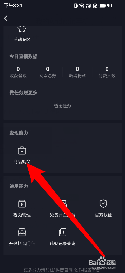 进入后再点击商品橱窗这个选项。