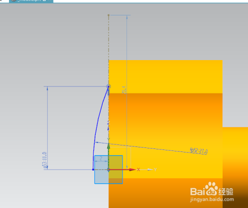 点击【菜单-插入-设计特征-扭转】点击绘绘制截面,选择XZ面,绘制一条直线,再绘制一条半径27,宽度2,长度11。