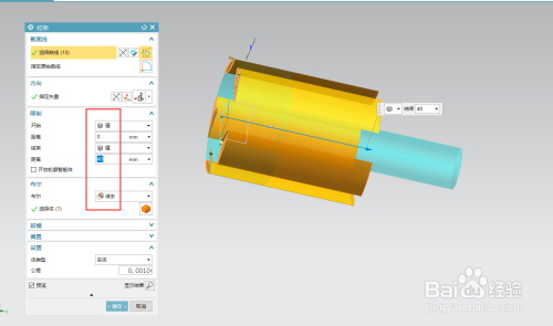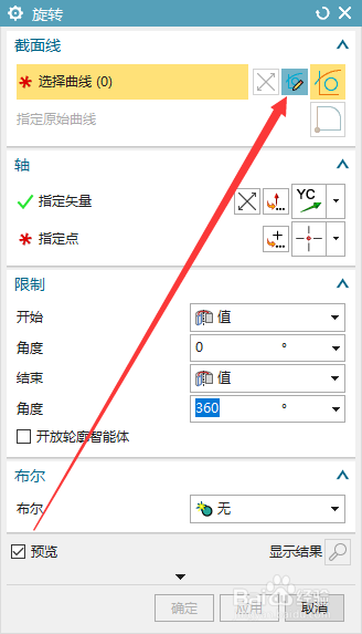 方才我们是在YZ面绘制的,所以我们指定矢量选择Y轴进行扭转。
