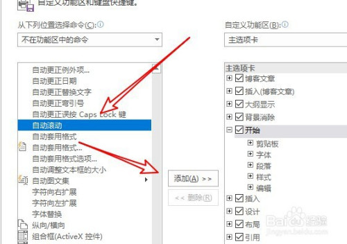 接下来鄙人面的列表中点击主动滚动的菜单,然后点击添加按钮。
