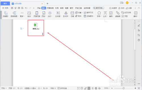 然后返回到文档之撤霸中,就可以看到已插入的“表格文件”