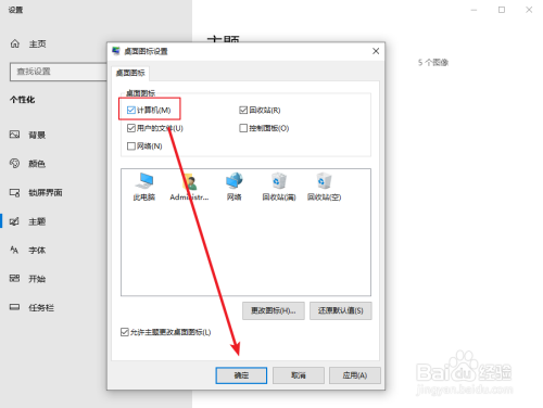 勾鉴低选【计较机】并点击【确定】,返回桌面您就可以看到此电脑图标了!