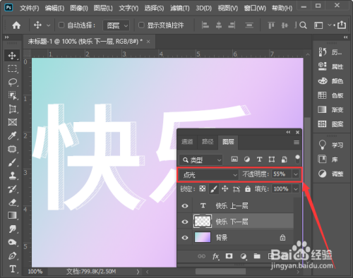 最后,我们把图层调整为【点光】,不透明度设置为55%就完当作了。