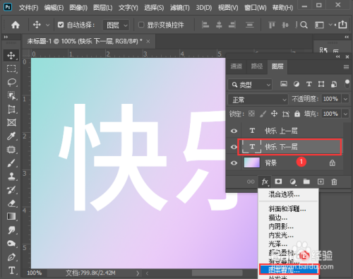 我们选中下一层的文字图层,点击【FX】-【图案叠加】。