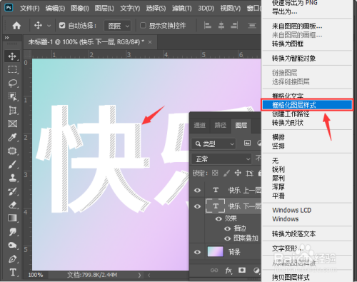 我们按下标的目的右偏向键移动几下,就可以看到添加好的斜线暗影了,然后右键【栅栏化图散距层样式】,如图所示。