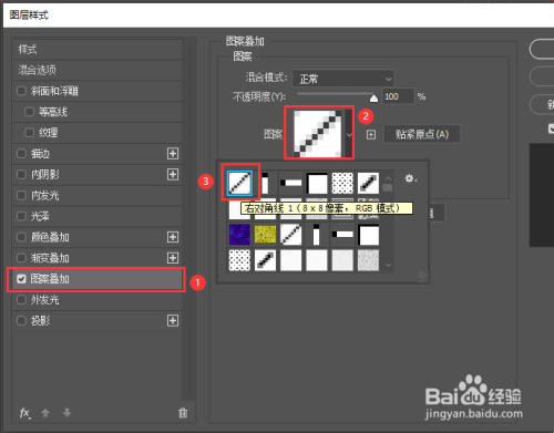 我们在图案中选择【右对角线】,如图所示。