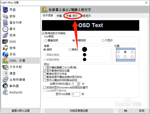 在“Light Alloy 设置”界面中,点击左侧的“OSD,字幕”选项。