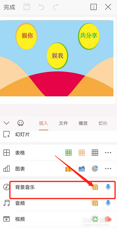 选择需要插入薪裁改的音乐后,页面上呈现了音乐的图标。
