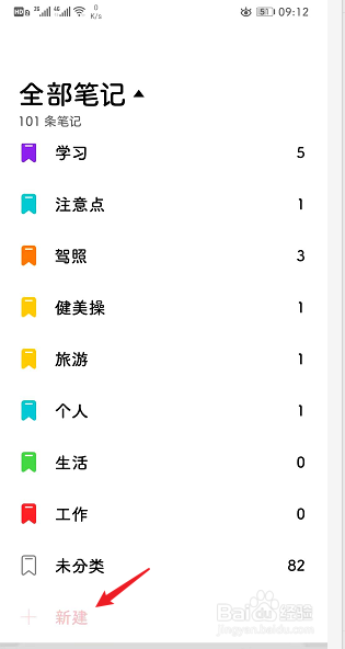 点击新建图标即可在哄绵廊此分类添加笔记了。