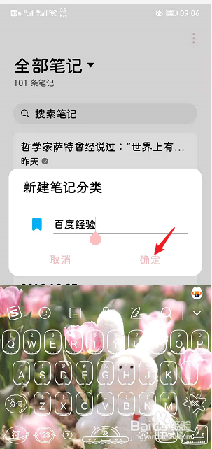 输入笔记名称,再点击”确定“。(点击有颜色的标签图标也可以改变颜色)