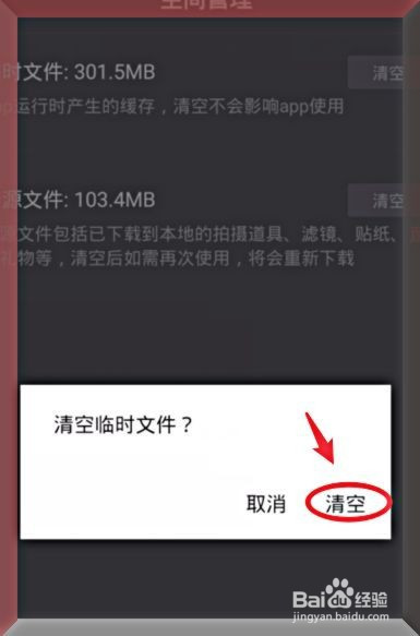 点击后,选择姑且文件的清空选项。牺游